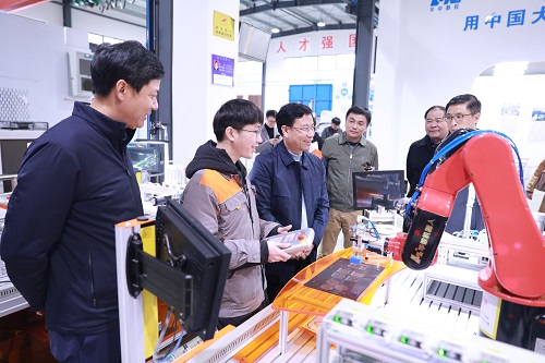 会后,调研组一行考察了我校汽车综合实训中心、数控技术实训中心、智能制造实训中心,并参加“工业视觉系统运维人才校企联合培养基地”揭牌仪式。