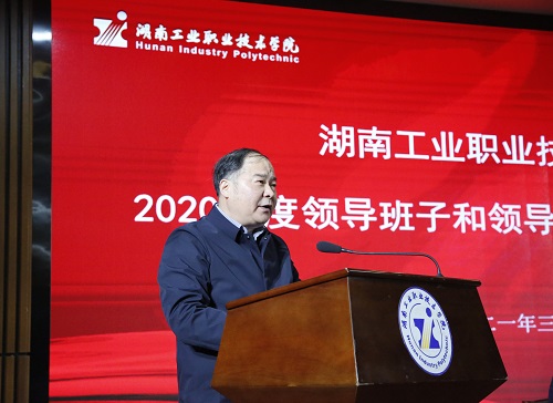 刘建湘代表学校领导班子,从“加强学习,不断提升政治素养”“履职尽责,全面完成各项任务”“坚持廉洁从政,切实加强党风廉政建设”三个方面对2020年度领导班子工作进行了总结,并作个人述职报告。