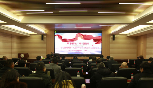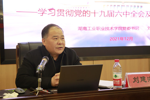 刘建湘指出,党的十九届六中全会是在“两个一百年”奋斗目标历史交汇的重大历史时刻,召开的一次具有重要里程碑意义的会议,学校将把学习宣传贯彻全会精神作为当前和今后一个时期的重大政治任务。他强调,要“全覆盖”,营造浓厚氛围、迅速掀起学习热潮;“深下去”,深化理论阐释,扩大学习效果;“活起来”,创新形式,打造特色;“真管用”,树立发展导向,取得实效,全力推动党的十九届六中全会精神在学校落地生根,把全会精神转化为奋进新征程、建功新时代、谱写学校发展新篇章的强大动力。