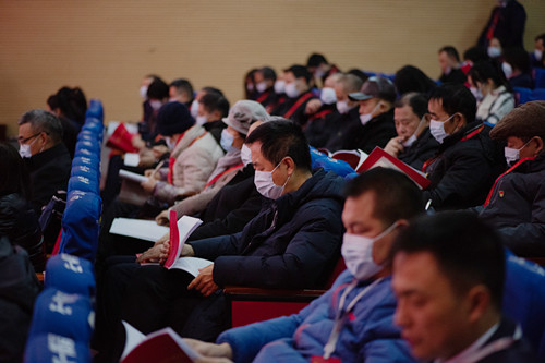 与会代表认真听取“两委”工作报告