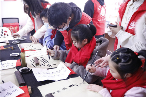 本网讯 “夜空中最亮的星,能否听清,那仰望的人……夜空中最亮的星,请照亮我前行。”1月12日,长沙市岳麓区天顶街道航天社区戒毒(康复)指导站里传来稚嫩而清澈的齐唱声,一群孩子在我校大学生志愿者的带领下唱歌、写春联,更有专业心理咨询师牵手孩子们做“团辅”互动游戏。