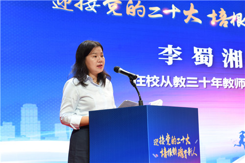 从教30年教师代表、经济管理学院李蜀湘回忆起这三十年在工院开垦、播种、耕耘的时光,备感骄傲和自豪,同时向年轻教师们提出了叮咛、嘱咐和希望。