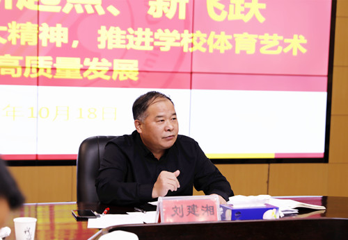 本网讯 10月18日下午,“书记有约”走进体育艺术部,在行政楼二会议室召开“新时代、新起点、新飞跃,贯彻落实党的二十大精神,推进学校体育艺术工作高质量发展”主题座谈会。学校党委书记刘建湘与体育艺术部全体教师面对面,就体育艺术教育工作高质量发展进行交流。