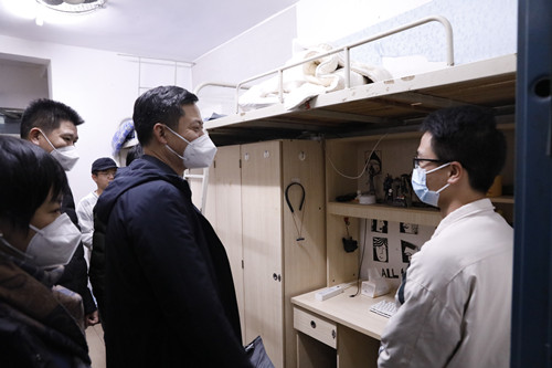 本网讯 12月6日晚,我校校长向罗生带队深入学生宿舍走访慰问学生,了解学生离校返乡、线上网课学习情况,并就相关工作提出指导意见。学校副校长成涛、副校长侯新华,党政办、学生工作部、保卫部、后勤处等相关部门负责人,相关二级学院党总支书记、辅导员、班主任等共同参加了巡查走访。