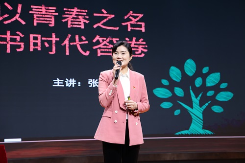 湖南第一师范学院红色教育培训学院副院长、毛泽东与第一师范纪念馆副馆长张颖以“以青春之名 书时代答卷”为主题开讲