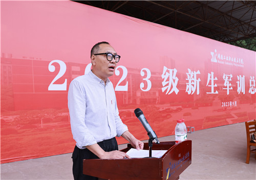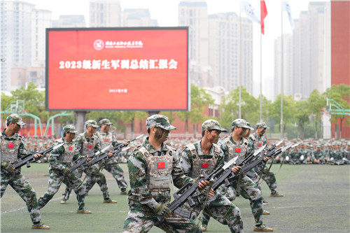 本网讯9月30日上午,2023级新生军训总结汇报会在我校田径场隆重举行。校党委书记刘建湘、副校长周梦顺、军训团团长彭利民,相关职能部门负责人,二级学院院长、党总支书记、副书记,新生班级辅导员、班主任,2023级全体新生参加。总结汇报会由副校长成涛主持。