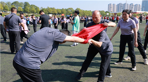 连体裤齐头并进、旋风跑速度较量、众星捧月通力协作、穿衣接力争分夺秒、趣味毛毛虫欢快跃动……趣味运动会率先上演。赛场上,参赛教职工聚精会神、通力合作、默契十足;赛场外,大家认真观察、总结经验、积极练习。