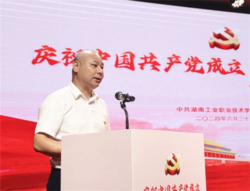 学校党委书记刘建湘同志讲话并讲授纪律党课。刘建湘代表学校党委,向获得“光荣在党50年”纪念章的4名老党员、新加入党组织的146名预备党员表示热烈的祝贺,向辛勤工作在学校各个岗位上的广大党员同志致以节日的问候。他表示,过去一年,全体党员凝心聚力、团结一致,充分发挥了基层党组织战斗堡垒作用和党员、干部先锋模范作用。他希望,学校作为服务湖南先进制造业的“排头兵”,要持续深化教育教学改革,提升关键办学能力,擦亮“楚怡”“工程机械”两张名片,为建设现代化新湖南提供有力人才保障。