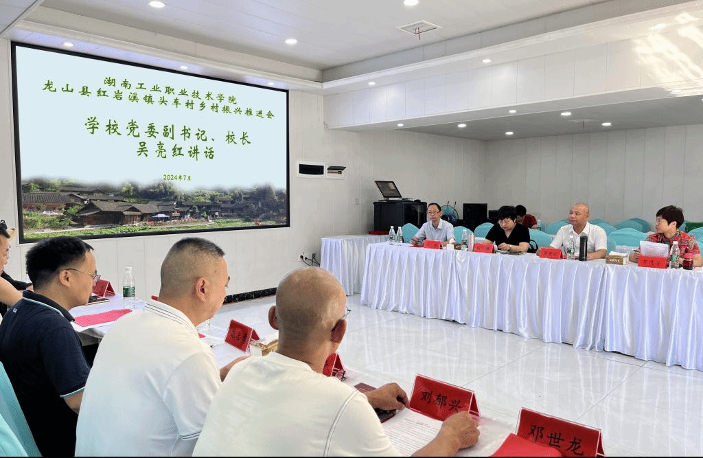 本网讯 7月24日,我校在龙山县红岩溪镇头车村大字沟古寨举行了驻村帮扶工作推进会。学校校长吴亮红、党委副书记成涛,龙山县委常委、组织部部长龙志勇,红岩溪镇党委书记田伟,东浩国际旅行社(张家界)有限公司总经理杨晓琳,湘西爱上国际旅行社有限公司总经理杨雪,我校驻村工作队全体队员参加推进会。会议由成涛主持。