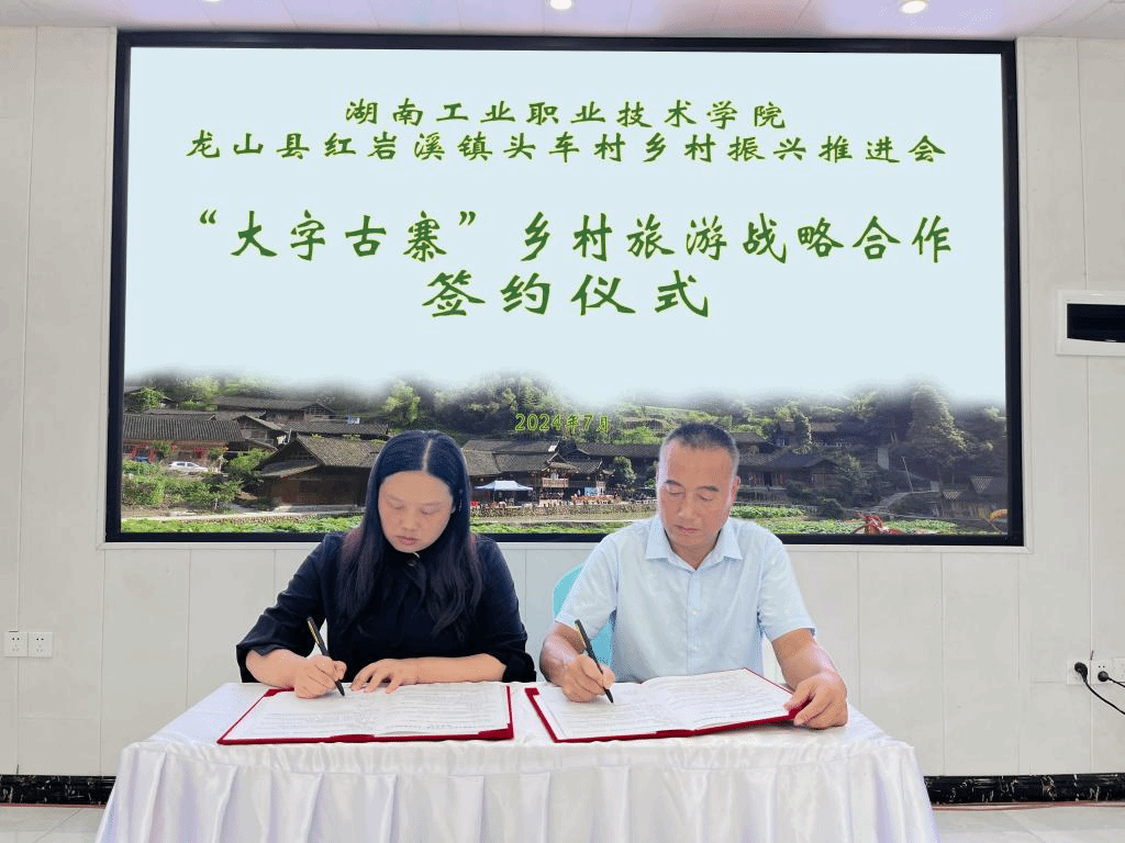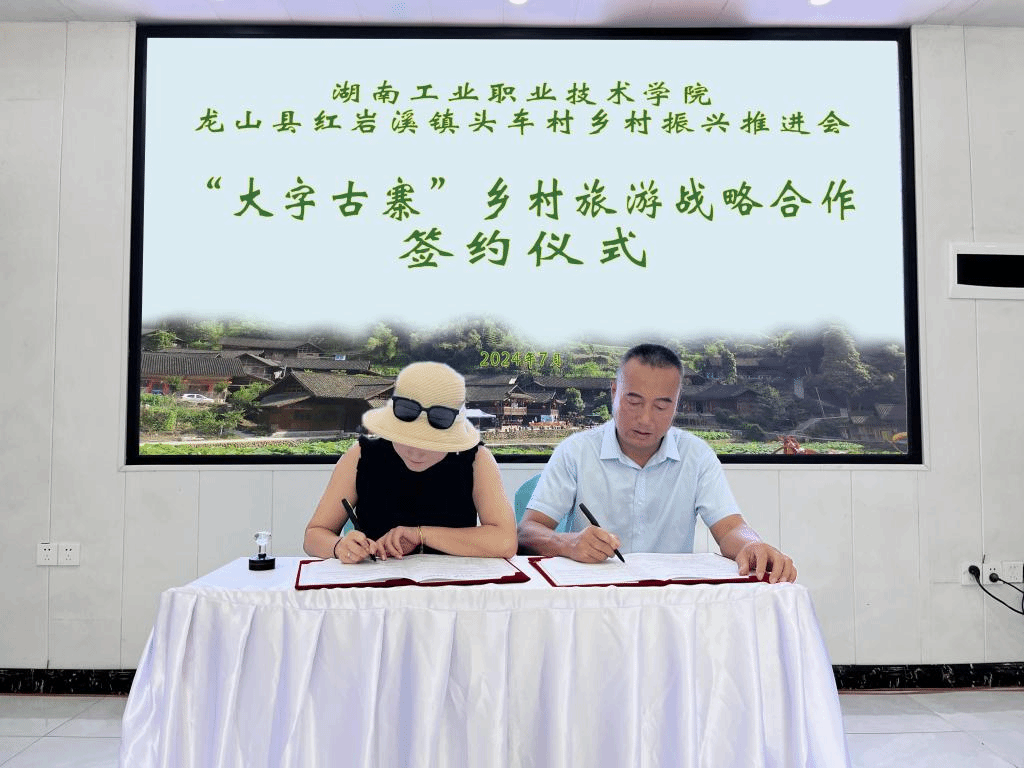 头车村大字古寨旅游公司与东浩集团、全球通旅游公司签订战略合作框架协议。
