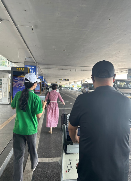 “作为一名新时代的青年大学生,我非常荣幸能够成为本次论坛志愿者的一份子。”学校经济管理学院金融23-4班的学生罗瑛说道。罗瑛被组委会任命为接机小组组长,负责统筹接机工作,“我们为接机做了充分的准备工作,如确认航班信息、安排车辆调度、准备接待物资等。开幕式的前一天,大家要为来自多个国家及地区的百余名嘉宾提供接机服务,确保嘉宾平安顺利抵达酒店。”志愿服务期间,从清晨到日暮,都能见到身着绿色志愿服的罗瑛和其他志愿者们不惧暑热,坚守在接机岗位上的身影。
