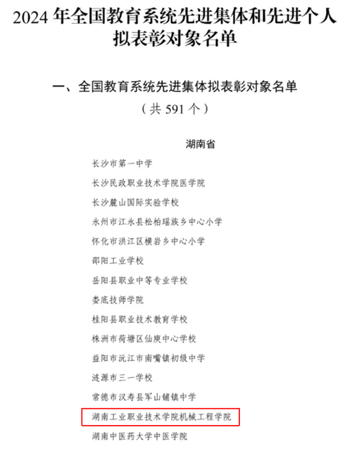 机械工程学院入选全国教育系统先进集体
