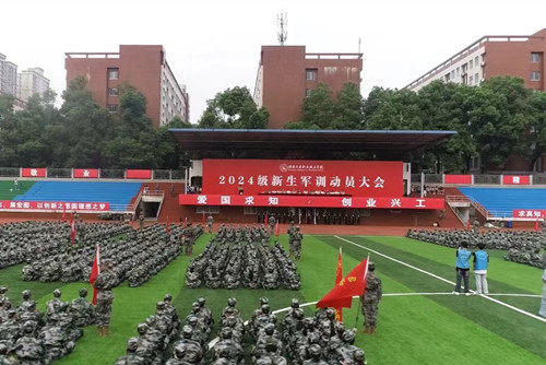 随后,侯新华向新生军训团授予军训团旗。我校2024级2800余名新生开启了为期十四天的军训生活,通过军事训练锻造品格、磨练意志、增强体质,促进综合素质全面提升。