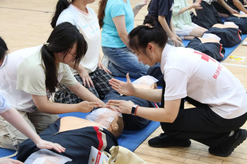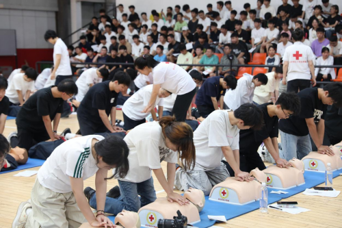 本网讯 在第26个“世界急救日”来临之际,9月11日至13日,我校联合长沙市红十字会,在校内室内训练馆开展2025级全体新生心肺复苏(CPR+AED)持证培训,4100余名新生通过考核获得急救证书,为校园安全应急体系注入新生力量。