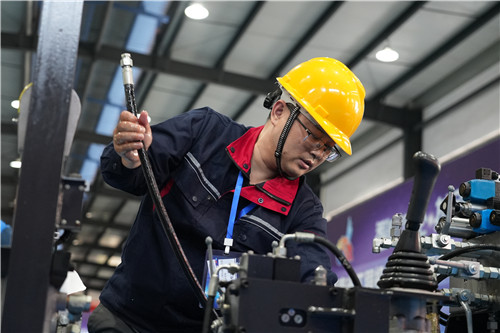 据介绍,比赛面向湖南省工程机械装备制造从业人员,分为实际操作和理论考试两部分,以典型工程机械装备为载体,考察选手设备装配、调试、检修能力及相关基础理论和法律法规知识。同时,本次竞赛精准对接产业转型的变革趋势,融入数字化、智能化技术及装备集成技术考核,促进职工数字技能应用能力和水平的提升。