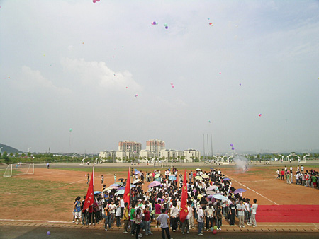为隆重纪念“五四”运动九十周年,迎接建国六十周年,繁荣校园文化,建设和谐校园,秉承“立德、敬业、精技、创新”的校训,院团委组织开展了以“践行科学发展 激扬青春风采”为主题的第九届“五四校园文化艺术节”。5月5日下午,本届艺术节开幕式在学校田径场隆重举行。学院党委书记廖洪元、副院长王柏林、各系党总支书记以及数百名学生代表参加了开幕式。开幕仪式由学生处处长侯新华主持。