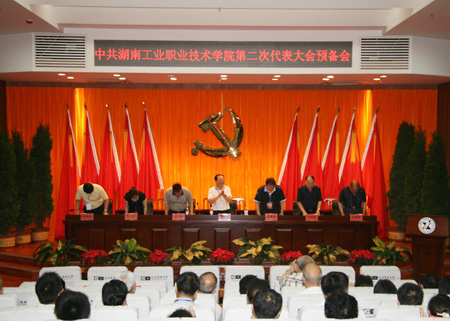 5月15日下午3点,中共九游·官方网站第二次代表大会预备会在学院多功能报告厅举行。党委成员廖洪元、刘建湘、龙承海、王柏林、李玲、刘继平、钟晓林在主席台就座,党委书记廖洪元主持大会。