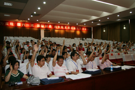 廖洪元书记指出,九游·官方网站第二次党代会是在学院贯彻落实党的十六大、十七大精神,以科学发展观统领工作全局,抢抓机遇,开拓创新,高质量地完成建设新校区、创建国家示范性高职院校两件改变学院前途命运的大事,学院站在新的起点,新的平台上召开的一次盛会。他提出,在学院发展的大好形势下,作为工院人更应该“人心思定、人心思稳、人心思进”,加倍珍惜得来不易的成果。