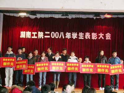 副院长王柏林宣读了《关于2008年度国家奖学金、励志奖学金、新生奖学金的表彰决定》。陈丹丹、周凯凯等12位同学获得国家奖学金。337位同学荣获励志奖学金以及11位同学获得新生奖学金。