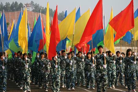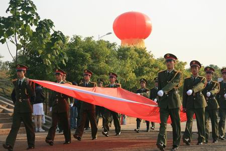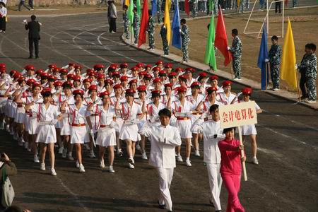 鲜艳的五星红旗随着雄壮的国歌徐徐升起,本届运动会拉开序幕。在嘹亮的运动员进行曲声中,迎面走来的国旗礼仪队、彩旗方队、裁判员方队、各系部代表队以及专业代表队迈着矫健而又整齐的步伐依次接受主席台的检阅。有力的步伐,高昂的口号,带着青春的豪迈尽显我院师生的朝气和风采。各代表队纯熟的步伐、潇洒的英姿、精彩的表演,博得了全场阵阵掌声。