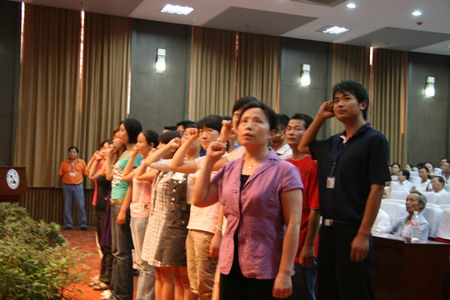王柏林副院长宣读了预备党员名单。何亨贵等333名同志光荣成为预备党员。随后,全体教师新党员面向党旗进行了庄严的宣誓。
