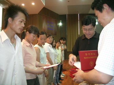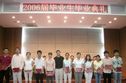 院党委书记廖洪元宣读《关于表彰2006届省级及院校优秀毕业生的决定》,学院领导为何安定等49名省级优秀毕业生和贺坚等110名同学颁发荣誉证书。