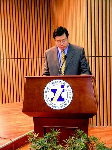 湖南省机械行业管理办公室党组书记、主任宋建民也向专家组介绍了湖南工院这几年来“抢抓机遇,深化改革,加快发展”的情况,他说:50年来,湖南工院的学子已经遍布三湘四水,走出国门。近年来,新的领导班子团结一致,突破生源骤增,学院面积小,制约学院发展的瓶颈,建成了面积达25万平方米的新校区。特别是2003年开展迎评创优工作以来,进一步明确了办学指导思想和办学定位,学院“依托机械行业办学,突出工业优势”的特色得到进一步彰显,打造了省内一流的工业技术应用型高技能人才培养基地,实现了学院各项事业的可持续发展。
