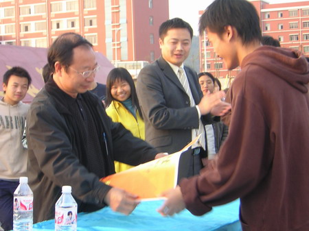 廖洪元书记为第一名获得者机械系代表队颁奖