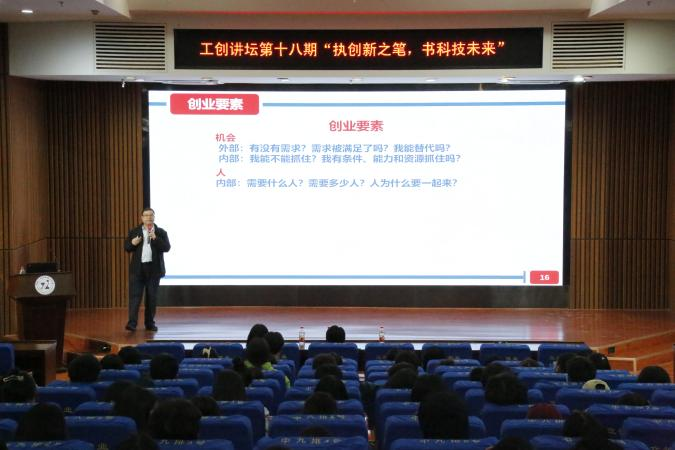 本网讯 3月28日,“工创讲坛”第十八期暨“执创新之笔,书科技未来”主题讲座在我校图书馆多功能报告厅顺利举行,本次讲座由创新创业学院主办,校团委青年创新创业服务中心承办,共200余名师生参加。