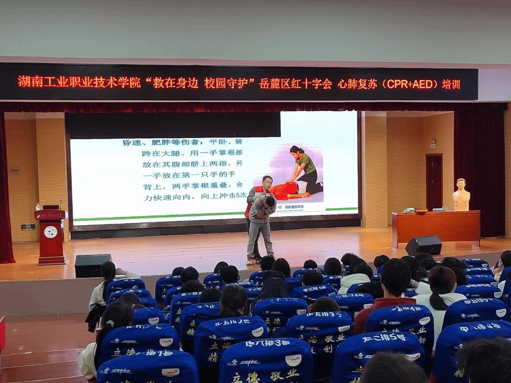本网讯 11月21日,我校后勤处联合校团委、岳麓区红十字会在1102大学生活动中心举办了“救在身边 校园守护”心肺复苏(CPR+AED)培训,师生志愿者代表近百人参与此次培训。
