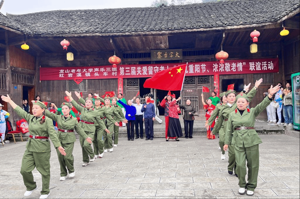 本网讯 金秋十月,丹桂飘香,又是一年重阳佳节。10月11日,湘西土家族苗族自治州龙山县红岩溪镇头车村大字古寨,欢声笑语,暖意融融,一场以“九九重阳节、浓浓敬老情”为主题的联谊活动在这里温情上演。此次活动由红岩溪镇头车村与龙山老年大学声乐三班联合举办,特邀乡贤参加,旨在弘扬中华民族尊老、敬老、爱老的传统美德,为村里的老人送去温暖与关怀。