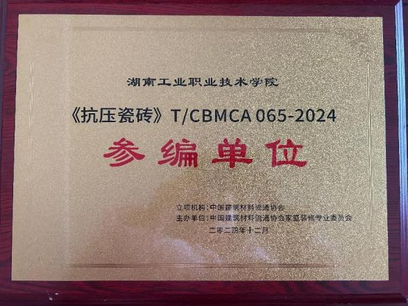 主办单位授予我校《抗压瓷砖》团体标准参编单位