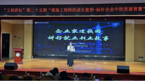 本网讯 近日,企业家进校园讲好就业创业故事暨第二十五期“工创讲坛”——“现场工程师的成长蓝图:标杆企业中的发展智慧”活动在我校大学生活动中心举行。本次活动由创新创业学院举办,校团委青年创新创业服务中心承办,由湖南省产业集群联盟工业数智中心副主任、美的集团美云智数解决方案区域总监唐新平主讲,共300余名学生现场聆听。