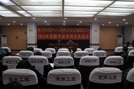 根据学院党委《关于召开2012年党员领导干部民主生活会的通知》的要求,后勤处在扎实做好会前准备工作的前提下,于1月8日下午组织召开了后勤党总支领导班子“学习贯彻党的十八大精神,扎实推进后勤服务工作”专题民主生活会。学院主管后勤副院长、联系后勤总支党委委员钟晓林、后勤党总支全体党员、入党积极分子、群众代表参加了会议,会议由后勤党总支书记侯新华主持。