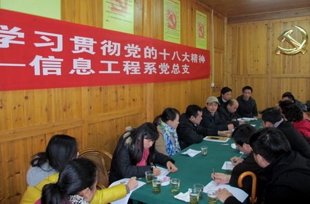 会上,信息工程系党总支副书记肖望兵深入解析了党的十八大精神,详细介绍了十八大精神中的亮点,特别结合了该系的实际情况进行了分析,鼓励每位党员努力在自己的工作岗位上发挥党员先锋模范作用。
