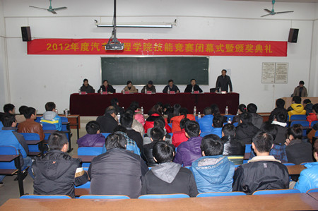 12月25日下午,2012年度汽车工程学院技能竞赛闭幕式暨颁奖典礼在2203教室隆重举行。学院副院长刘继平、教务处副处长李力夫、汽车工程学院副院长任成高、党总支副书记段可以及相关教研室负责人出席典礼,汽车工程学院全体教职工及部分学生代表参加了典礼。颁奖典礼由汽车工程学院副院长何忆斌主持。