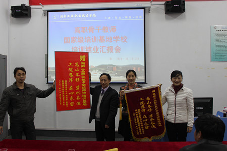 汇报结束后,何忆斌详细介绍了下一阶段下企业进行顶岗实践的安排和部署。为了表示对学院的感谢,学员们还向学院赠送了锦旗和牌匾。学院教务处处长周劲松和汽车工程学院副院长任成高代表学院接受了锦旗和牌匾。