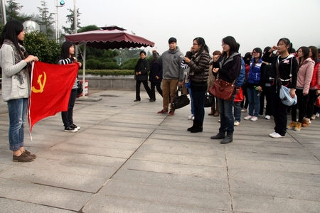 随后,40余名党员于左至右绕铜像一圈,进行庄严的重温誓词活动。“我志愿加入中国共产党,拥护党的纲领,……随时准备为党和人民牺牲一切,永不叛党。”一阵整齐有力、气慨冲天的誓词顿时响彻整个广场。