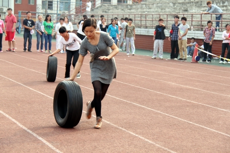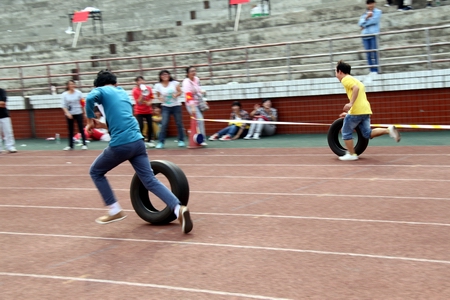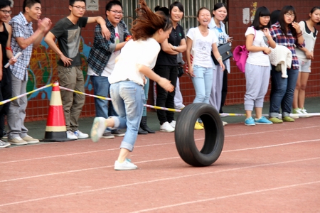 趣味运动项目 滚轮胎接力赛