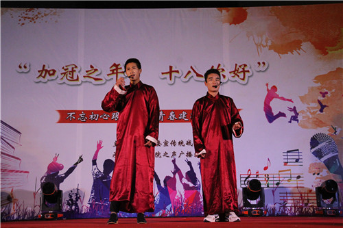 本网讯 12月21日晚,由我校党委宣传部主办、工院之声广播站承办的“加冠之年,十八你好”工院之声广播站18周年庆典晚会在训练馆内举行。党委宣传部部长成涛及宣传部相关指导老师、广播站老成员代表受邀出席晚会。