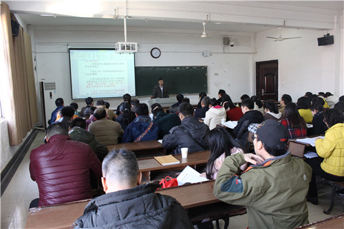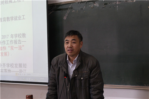 马跃龙向大家传达了湖南工业职院技术学院2017年教育教学就业工作会议精神,并带领全体教职工重点学习了校长向罗生在学校教育教学就业工作会议上所作的题为《瞄准“高水平院校” 加快“双一流”建设 迈开新步伐 实现新发展》的工作报告。
