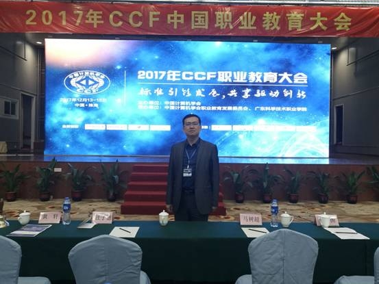 本网讯 12月14日至15日,中国计算机学会(CCF)2017年全国职业教育大会在珠海隆重举行。大会由中国计算机学会主办,中国计算机学会职业教育发展委员会、广东科学技术职业学院承办,来自全国88所高校的领导、专家、职业教育领域的骨干教师和28家企业代表共计300余人出席大会。我校工业设计与艺术学院党总支副书记郑志凌作为CCF职业教育发展委员会委员受邀参加本次大会。
