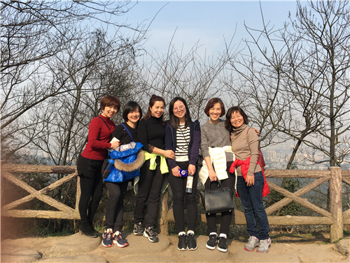 登山活动现场部分女职工合影