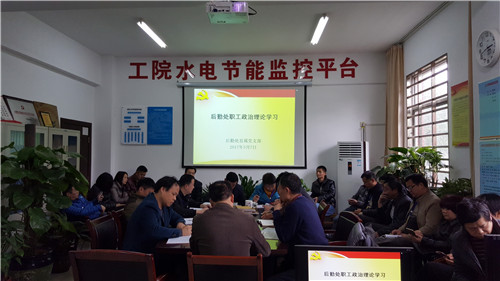 苗治田向全体后勤党员职工传达了省教育系统党风廉政建设视频会议精神,以及2017年学院党风廉政建设工作重点和要求。支部委员易月明带领大家学习了十二届全国人大五次会议《总理政府工作报告要点》。支部委员熊革佳向全体党员职工宣读支部2017年党员联系群众“一对一结对帮扶”及“优质服务岗”创建活动方案。