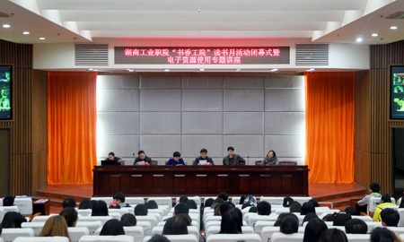 本网讯 12月3日,“书香工院”读书月活动闭幕式暨电子资源使用专题讲座在图书馆报告厅举行。北京万方数据有限公司销售经理李嫒、北京超星数图信息技术有限公司项目经理廖炎森、讲师廖花林及我院团委、信息化建设与管理中心相关负责人出席活动。
