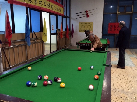 本网讯 11月9日、10日两天,由离退休工作处主办、桌球协会承办的首届“杆王杯”桌球比赛在老校区活动中心举行。本次比赛按照不分男女、混合抽签的方式,采取淘汰制,按国际15球竞赛规则进行。选手平均年龄在65岁以上,最高年龄为77岁,且有两名女性选手参赛。