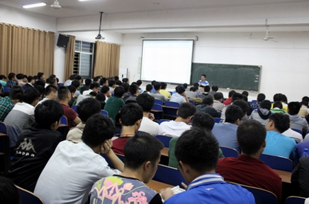 许道义向学弟学妹们介绍了自己在校学习及毕业后在长沙博世集团四年来的成长经历,分享了职场生涯中的个人体会和经验,讲述了学校与企业所存在的差异。他指出,在职场对所在的企业要有归属感,能为企业创造效益,体现自身的价值,做出与企业发展相符合的个人规划;要培养自己良好的沟通和领悟能力,在企业要学会与同事领导进行很好的交流,“师傅领进门,领悟靠个人”,沟通能力强的人,才能更容易得到企业的重任;要学会管理自己的性格,注重个人发展的同时增强团队意识,尽快融入团队,做一名优秀的工作者。