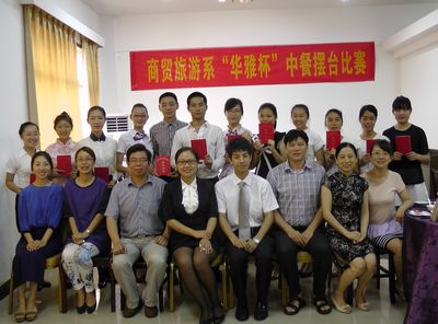 本次比赛由商贸旅游系和华雅国际大酒店共同策划、组织,旅游与文化教研室具体负责报名、培训以及初赛和决赛的组织实施。商贸系主任邓新春、副主任杨文斌、华雅国际大酒店人力资源部经理张洪波、酒店招聘干事韦冲、旅游与文化教研室主任沈飞跃,专业教师尚晓丽、刘昕瑜、杨丹老师等担任本次比赛评委。