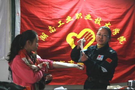 12月7日,我院青年志愿者协会举行“自救与互救”志愿者培训,“湖南红十字蓝天救援队”受邀为200多名学生志愿者进行消防常识普及、应急疏散演练及医疗急救之止血包扎科目的学习。