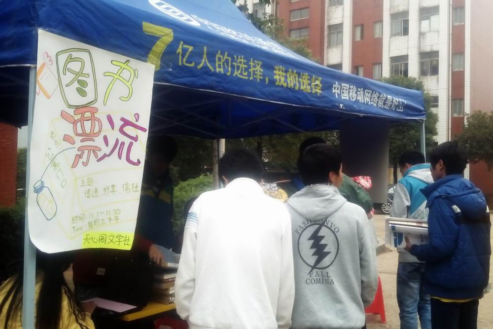 据悉,此次“图书漂流”活动将持续一个月,期间进行四次“再漂”,每周星期三在学生公寓门口以摆台的形式进行“再漂”。漂流的书籍有《红楼梦》、《黄金时代》、《围城》、《蛙》、《家》等200多本经典书籍。